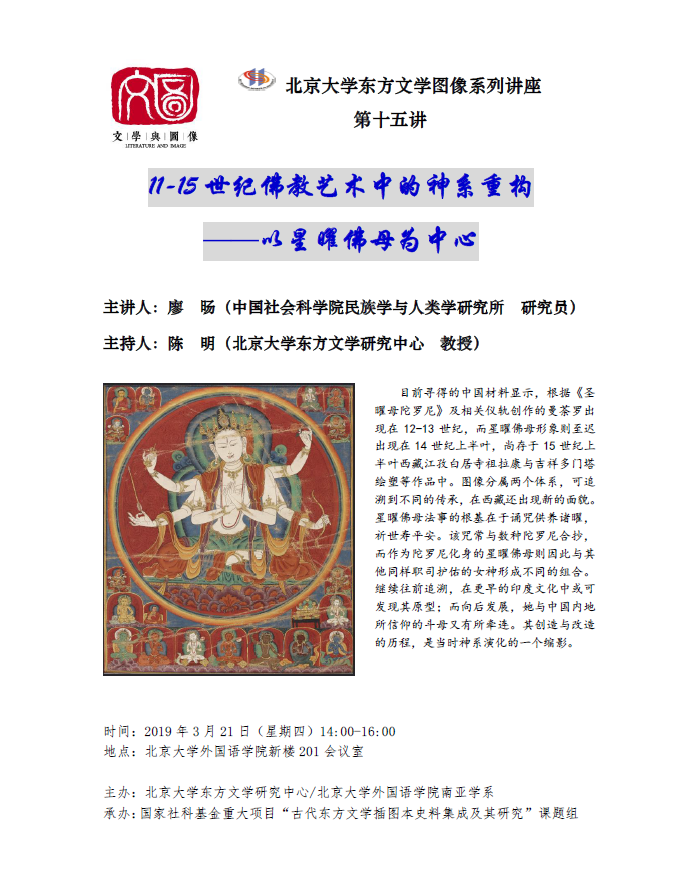 beat365平台唯一官网东方文学图像系列讲座 第十五讲:11-15世纪佛教艺术中的神系重构——以星曜佛母为中心