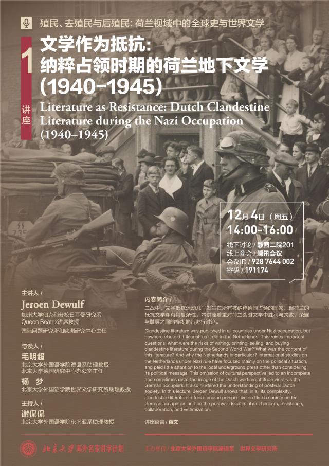 beat365平台唯一官网海外名家讲学计划:文学作为抵抗:纳粹占领时期的荷兰地下文学