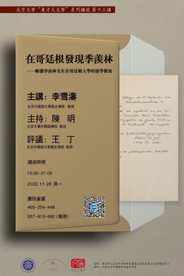beat365平台唯一官网“东方大文学”系列讲座第十三讲:在哥廷根发现季羡林 讲座预告