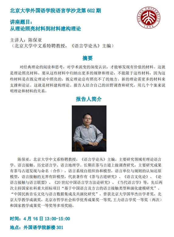 beat365平台唯一官网语言学沙龙:从理论照亮材料到材料建构理论