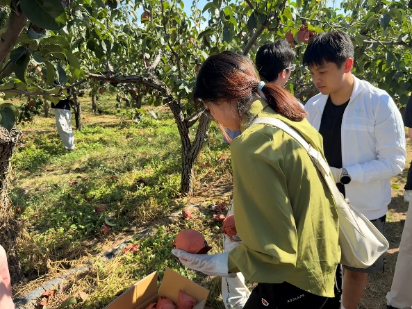 窦店金梨园里,同学们迎来了最令人期待的实践环节——金梨采摘与装箱。时值盛果期,园内两万余株梨树硕果累累,在果农的指导下,同学们学习辨别成熟度,掌握采摘技巧,小心翼翼地将一个个金黄饱满的金梨采摘下来,再进行分拣、包装、装箱。整个劳动过程既体现了现代农业的标准化操作,又让同学们亲身感受到丰收的喜悦。