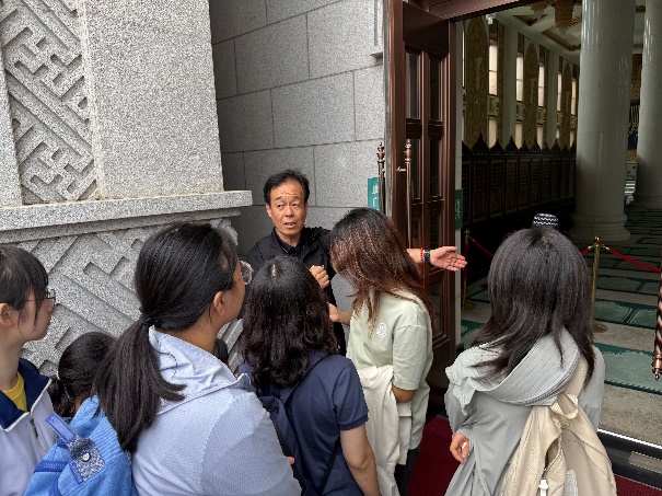 特别值得一提的是,本次实践还组织了多语种教师全程参与。蒙古语专业教师刘迪南老师和外教Guruuchin Gerelmaa在劳动间隙,现场教学“劳动”“丰收”“乡村振兴”等专业词汇的蒙语表达;阿拉伯语专业付志明老师还充分利用当地资源,带领学生们参观了华北地区最大的清真寺——窦店村清真寺,并结合实物与场景,现场讲解了相关文化背景和词汇,让语言学习更加生动地融入劳动实践之中。师生们约定,将用专业语言撰写电子报纸,向世界介绍窦店的现代化农业模式。