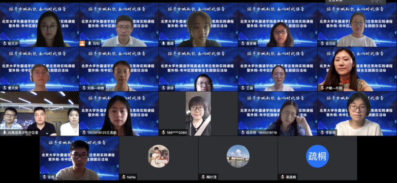 主题团日课程活动的最后,临时团支部书记惠婧同学领誓入团誓词,并带领同学们合唱《歌唱祖国》。“勇担时代职责,绽放青春之花”北大英语系学子枣庄实践线上课程暨外院-市中区团委联合主题团日课程活动随着歌声圆满落幕。