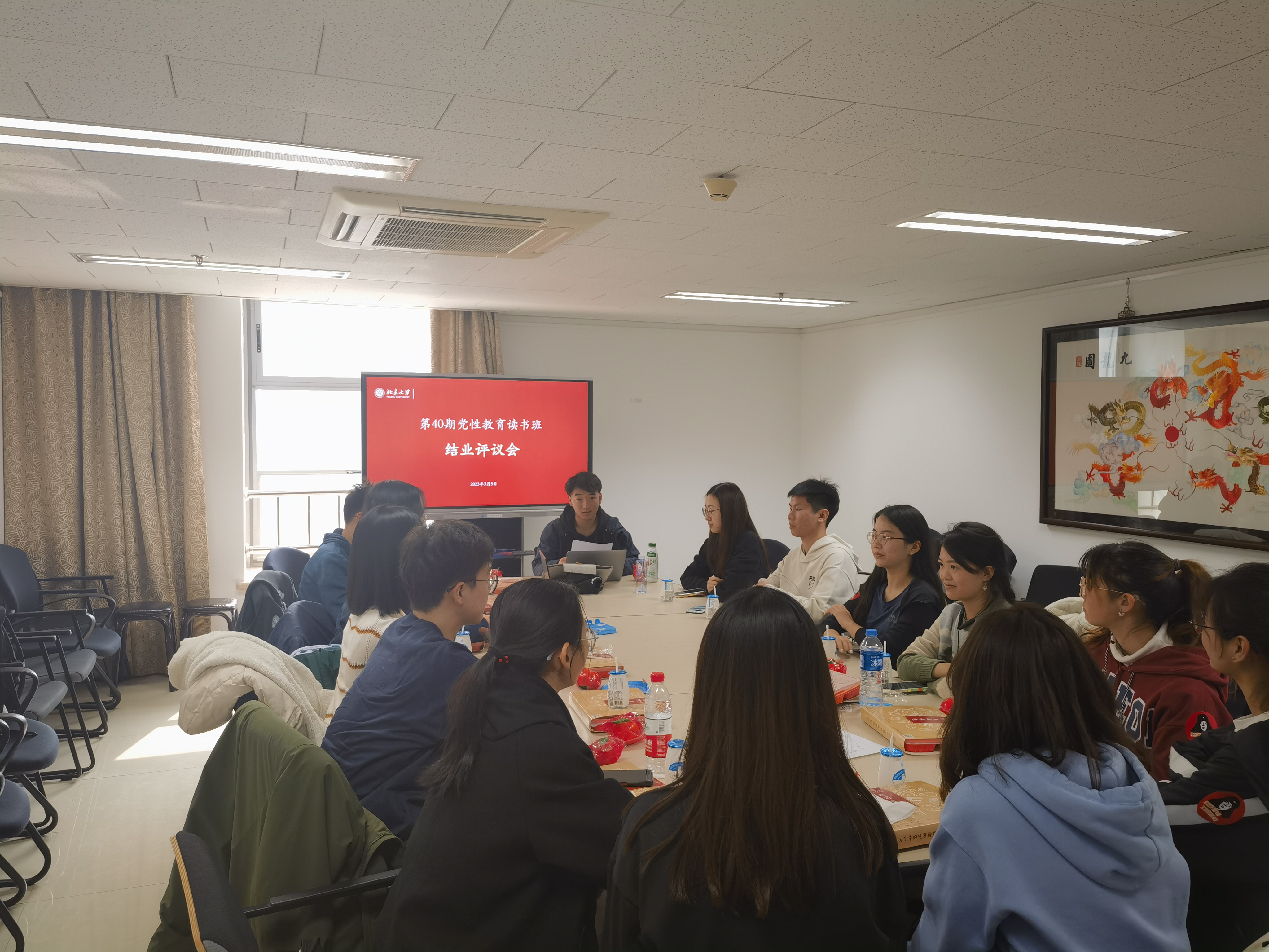 结束参观后,学员们回到燕园,在领队辅导员王乃懋的带领下于beat365平台唯一官网新楼401会议室、402会议室开展了实践心得分享、学习两会报道、开展结业评议等活动。