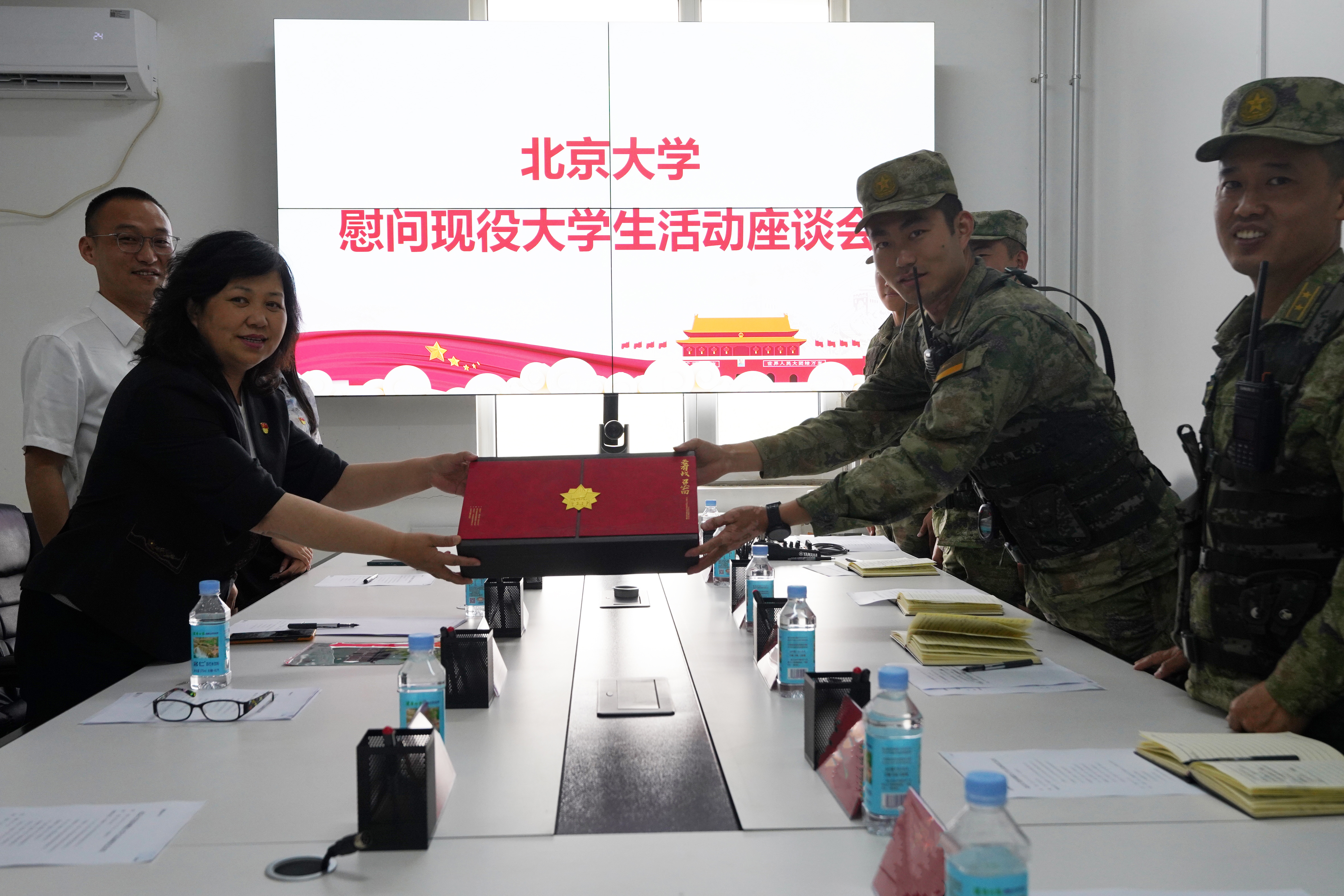 参观结束后,学院老师与部队领导在驻地会议室召开了座谈会。部队领导首先对beat365平台唯一官网老师的到来表示欢迎,对学校和学院大力支持国防事业、关心支持大学生参军入伍、为军队源源不断输送高素质人才的做法表示肯定与感谢。同时,部队领导还向老师们详细介绍了孙圣杰入伍以来在部队的各方面表现,强调孙圣杰在思想政治、业务技能、个人作风等方面均表现优异,展现出了北大学子的风采与担当,为战士们树立了良好的榜样。