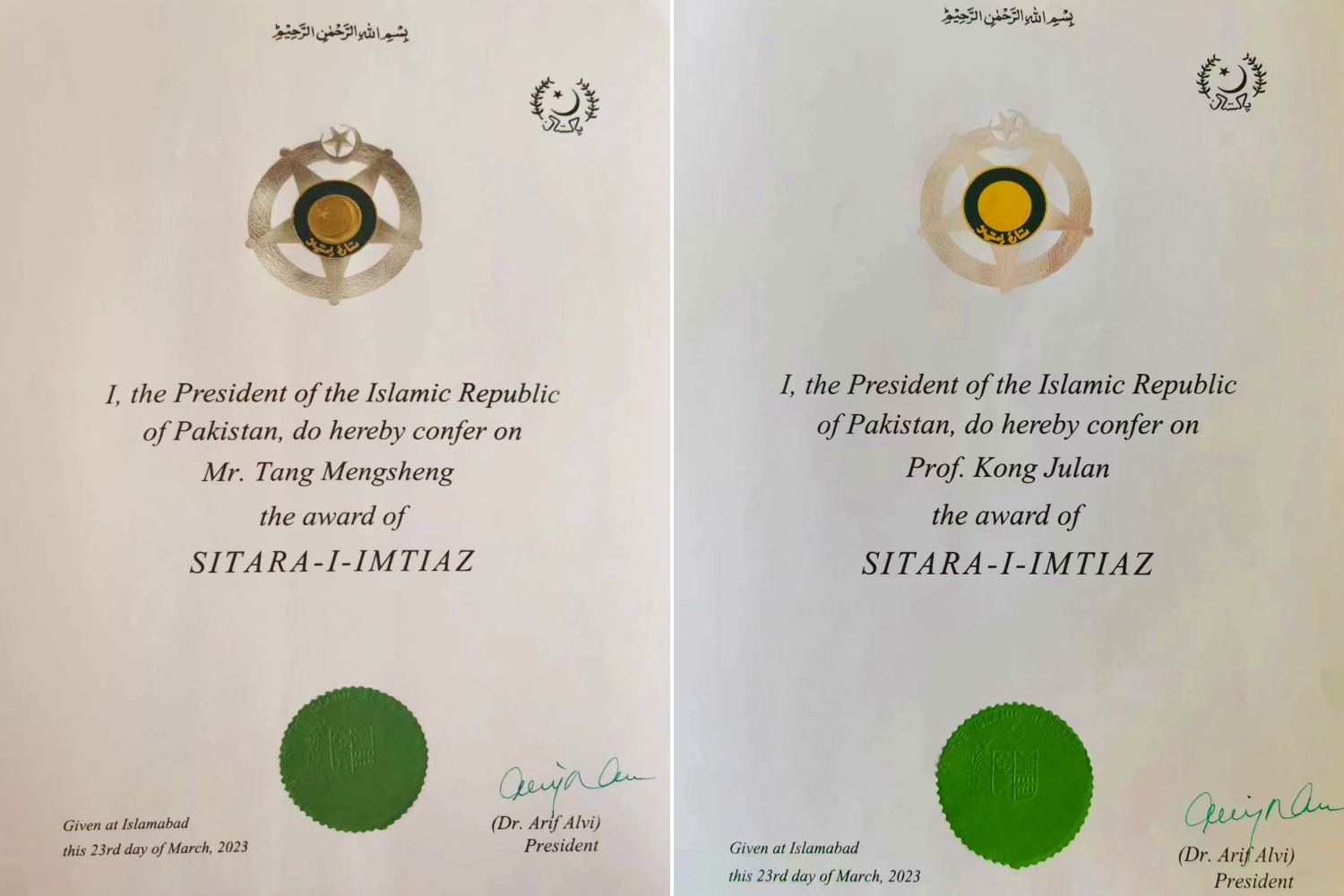 beat365平台唯一官网教授唐孟生、孔菊兰荣获巴基斯坦“卓越之星”勋章
