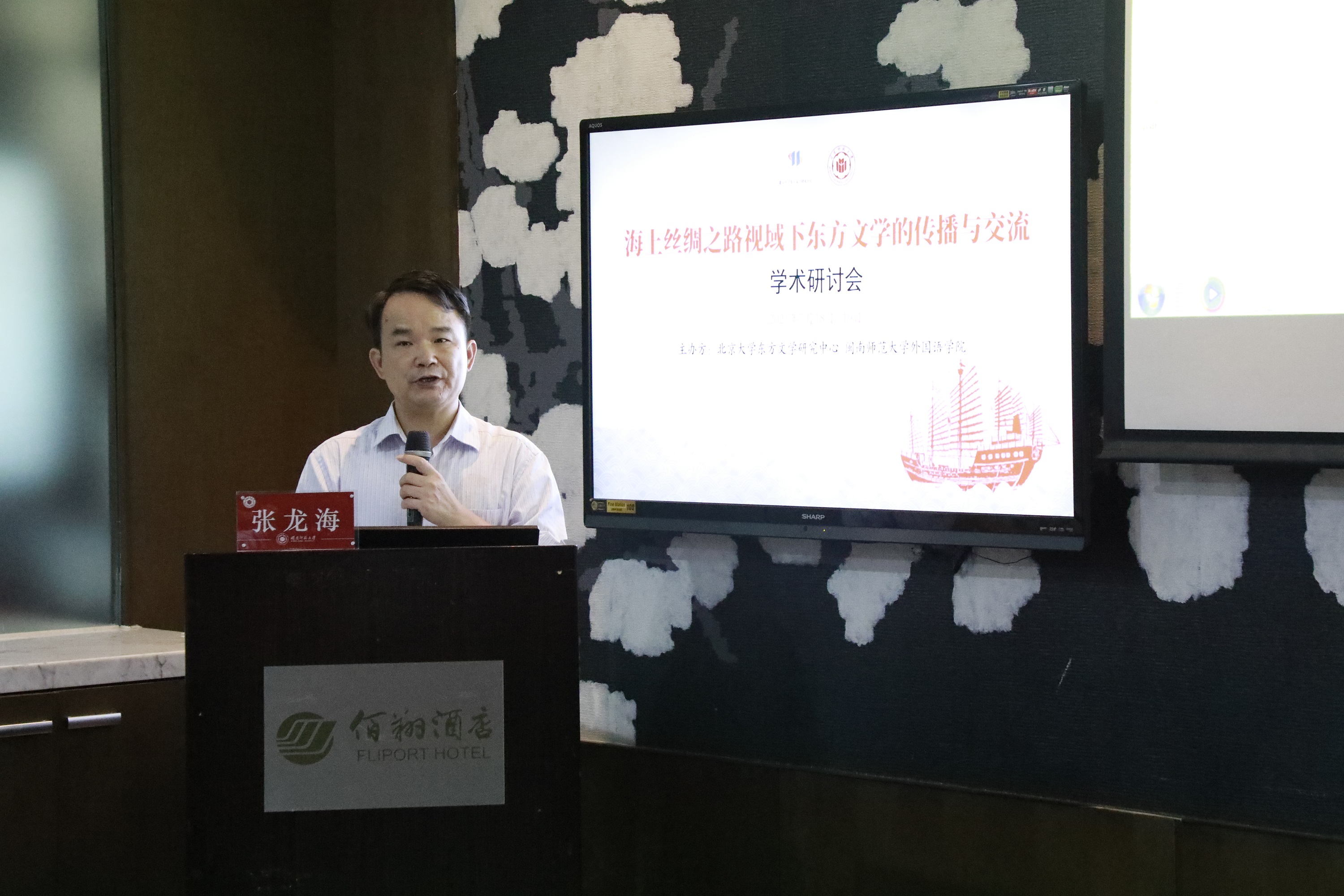18日上午,闽南师范大学张龙海副校长、陈明教授、付志明教授与林丰民教授共同主持了“海上丝绸之路视域下东方文学的传播与交流”学术研讨会的开幕式。