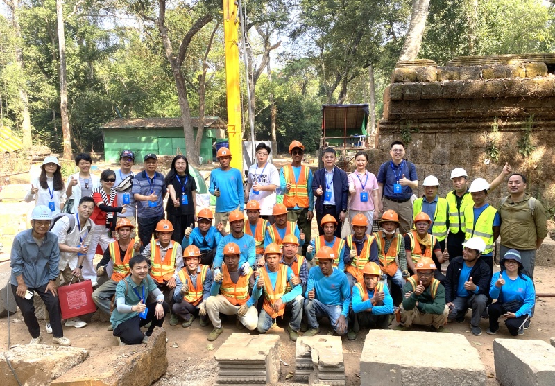 1月21日上午,调研团前往“中国援建柬埔寨吴哥古迹王宫遗址修复项目”施工现场。中国文化遗产研究院副研究员刘汉兴介绍了王宫遗址修复项目的进展和预期目标。位于大吴哥城核心区的王宫遗址修复项目工期为11年,中方工作团队结合考古与建筑修复,厘清王宫遗址各单体建筑的基础形制结构、分布范围以及地下埋藏堆积状况,修缮文物建筑及遗址,并力求梳理中国与柬埔寨古代文化往来脉络。王宫遗址保护修复项目是中国参与柬埔寨文化遗产保护工作的第三阶段,此前已顺利完成了周萨神庙和茶胶寺保护修复项目,得到柬埔寨政府和民众以及外国游客的高度评价。