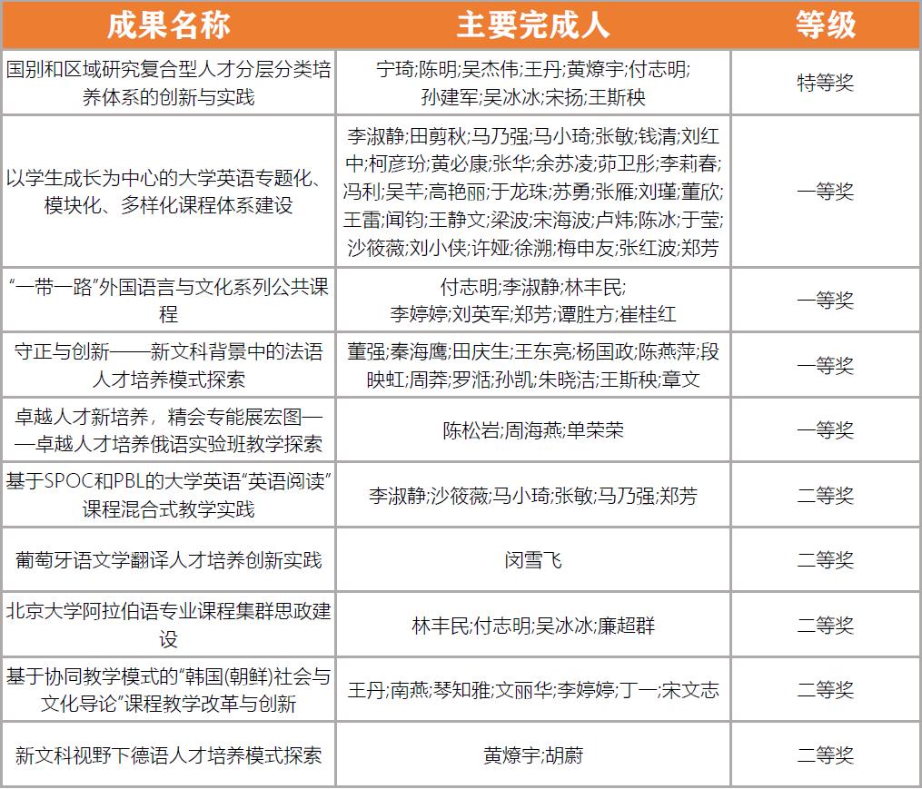 近日我院教师喜获多项教学奖励,10项教学成果荣获beat365平台唯一官网教育教学成果奖(名单附后)。其中2项成果入选北京市教育教学成果奖,分别是宁琦等10位老师完成的“国别和区域研究复合型人才分层分类培养体系的创新与实践”项目荣获一等奖,李淑静等36位老师完成的“以学生成长为中心的大学英语专题化、模块化、多样化课程体系建设”荣获二等奖。