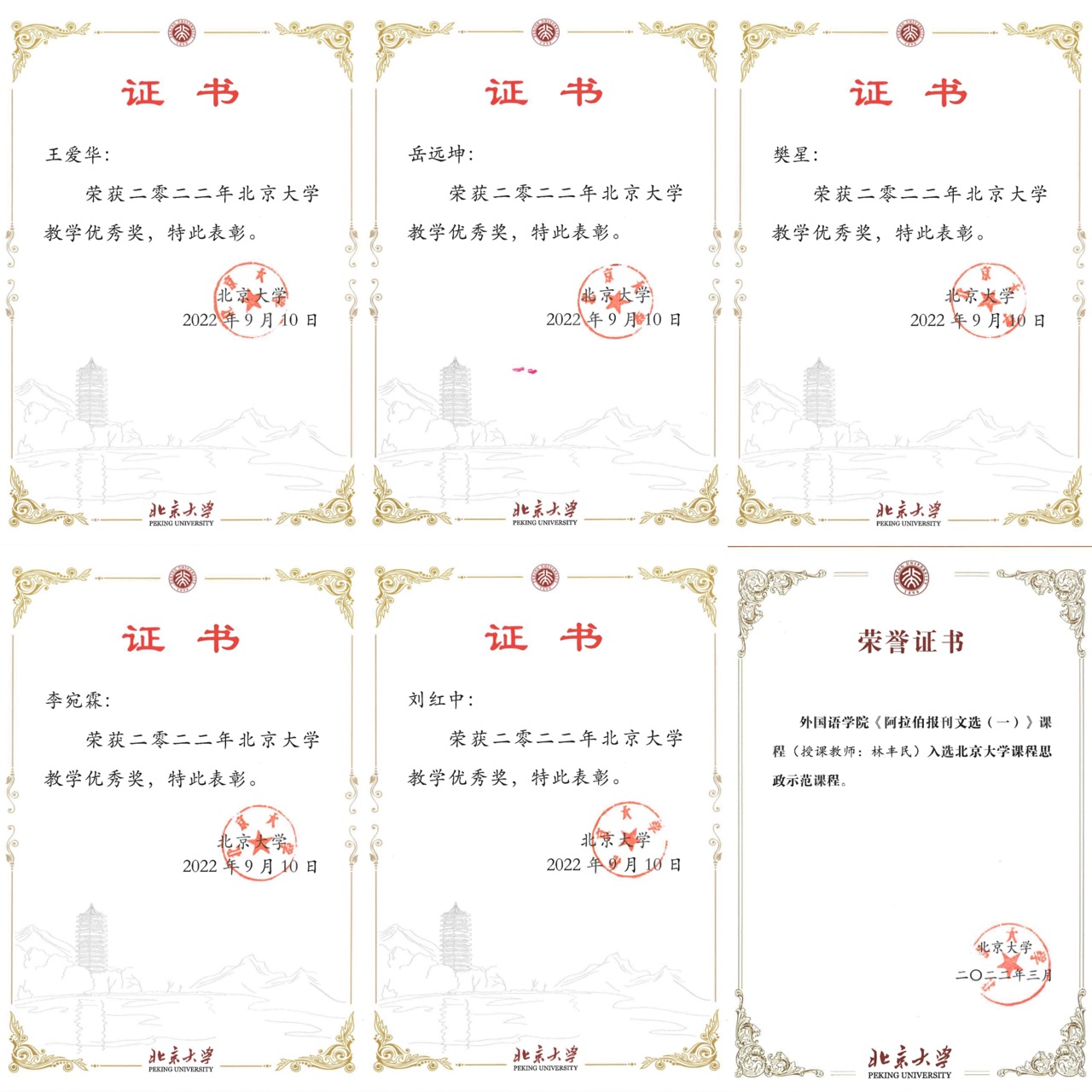 此外,王爱华、刘红中、李宛霖、岳远坤、樊星荣获2022年beat365平台唯一官网教学优秀奖,《阿拉伯报刊文选(一)》(授课教师:林丰民)入选beat365平台唯一官网课程思政示范课程。