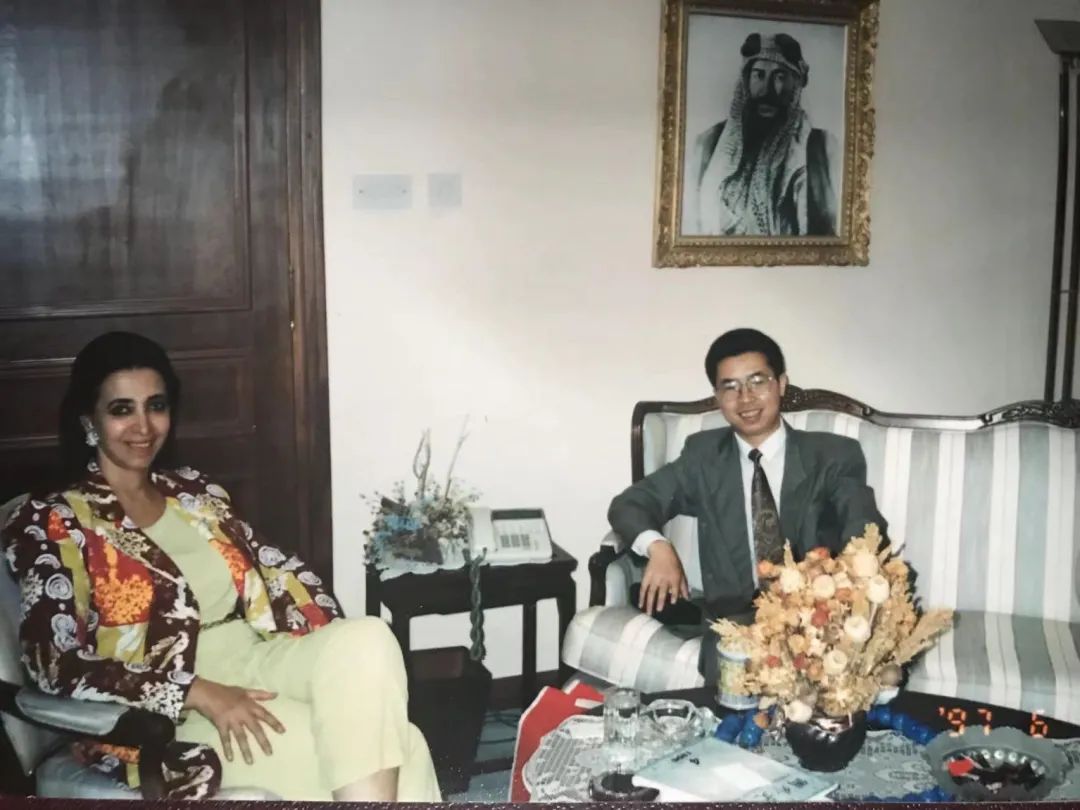 青年林丰民老师(右)与科威特公主诗人苏阿德·萨巴赫(左)会谈