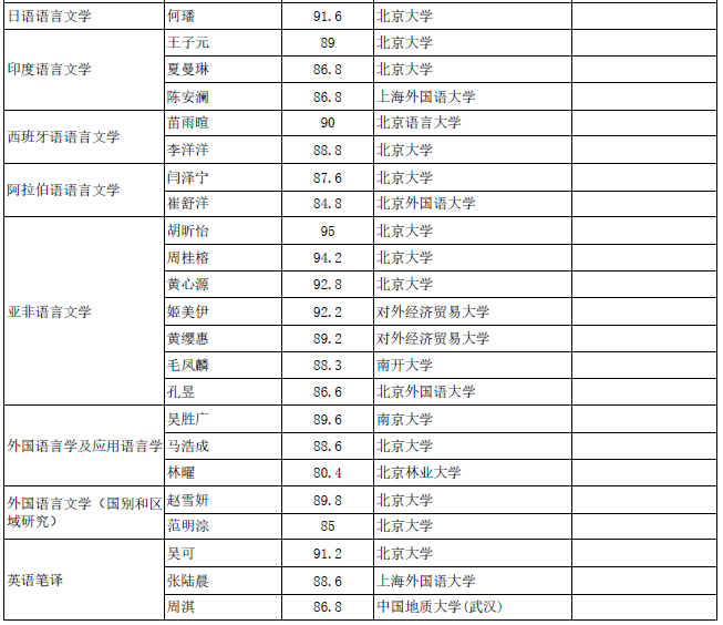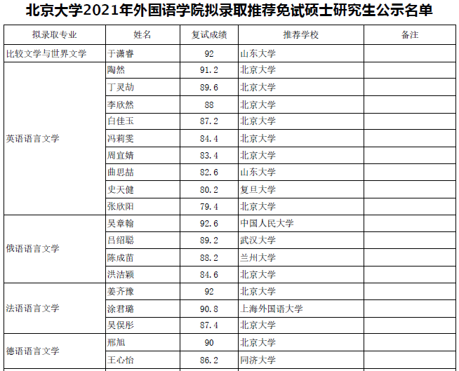 beat365平台唯一官网2021年beat365平台唯一官网拟录取推荐免试硕士研究生公示名单