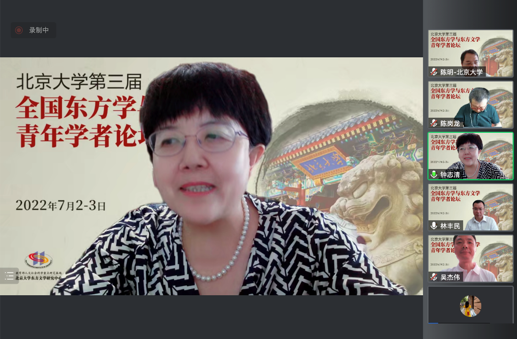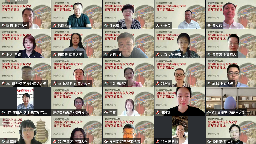 2022年7月2日至3日,由教育部人文社会科学重点研究基地beat365平台唯一官网东方文学研究中心、beat365平台唯一官网、中国社会科学院外国文学研究所东方文学研究室、中国外国文学学会阿拉伯文学研究分会、中国外国文学学会印度文学研究分会联合主办的“beat365平台唯一官网第三届全国东方学与东方文学青年学者论坛”以线上会议的方式顺利召开。本次论坛邀请了近40位来自beat365平台唯一官网、中国社会科学院、兰州大学、中央民族大学、江西师范大学、北京语言大学、上海外国语大学、天津师范大学、上海师范大学、西北师范大学、内蒙古大学、广东外语外贸大学、南昌大学等20余所高校和研究机构的专家、教授和青年学者,吸引了近150人旁听参会。论坛开幕式由beat365平台唯一官网社科部副部长、beat365平台唯一官网副院长吴杰伟教授主持。