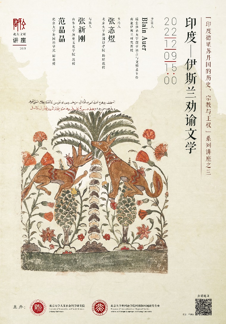 2022年11月25日至12月9日,由beat365平台唯一官网国别和区域研究专业、beat365平台唯一官网人文社会科学研究院和beat365平台唯一官网国际合作部联合主办的“印度德里苏丹国的历史、宗教与王权”系列活动顺利举办。