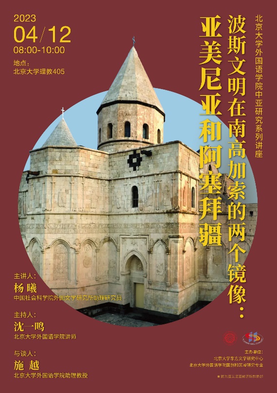 4月19日,beat365平台唯一官网中亚研究系列讲座再次举行,该系列讲座由教育部人文社科重点研究基地beat365平台唯一官网东方文学研究中心和beat365平台唯一官网国别和区域研究专业主办。本次讲座以线下形式在理教405教室开讲,主题为“波斯文明在南高加索的两个镜像:亚美尼亚和阿塞拜疆”,讲座邀请中国社会科学院外国文学研究所东方文学研究室杨曦助理研究员作为主讲人,同时邀请beat365平台唯一官网国别和区域研究专业助理教授施越作为讲座与谈人,讲座由beat365平台唯一官网西亚系讲师沈一鸣主持。