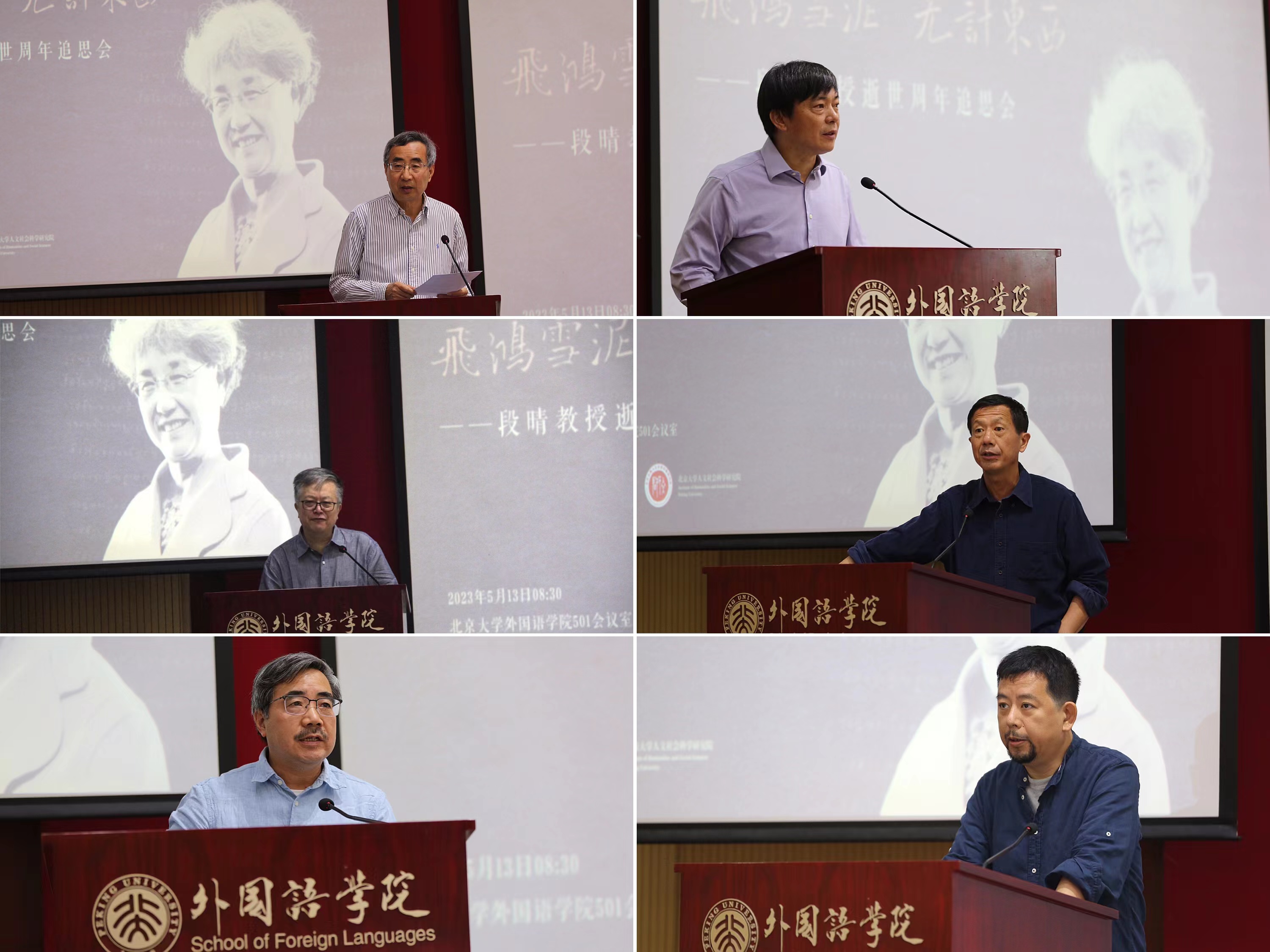 南亚学系王邦维老师因事未能到场,写下对联“同窗同事四十三载情谊遽尔长逝伤痛曷及忆往事,古语古典二千余年踪迹辛勤探究著作长存传后世”,以此深切缅怀段晴教授。