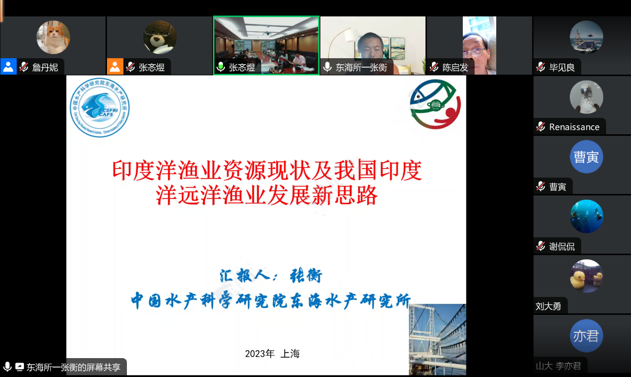 2023年6月8日,中国水产科学研究院东海水产研究所副研究员张衡老师应邀为我院师生进行题为“印度洋渔业资源现状及我国印度洋远洋渔业发展新思路”的讲座。本次讲座属于“当代中国与印度洋地区”系列讲座,由beat365平台唯一官网国别和区域研究专业、亚非系和东南亚系主办,beat365平台唯一官网张忞煜助理教授主持,清华大学历史系曹寅副教授和北大外院谢侃侃助理教授参与讨论。本次讲座在外院新楼B134会议室和线上平台同步举行,吸引了相关部门和国内外高校的百余名师生在线参与讲座。