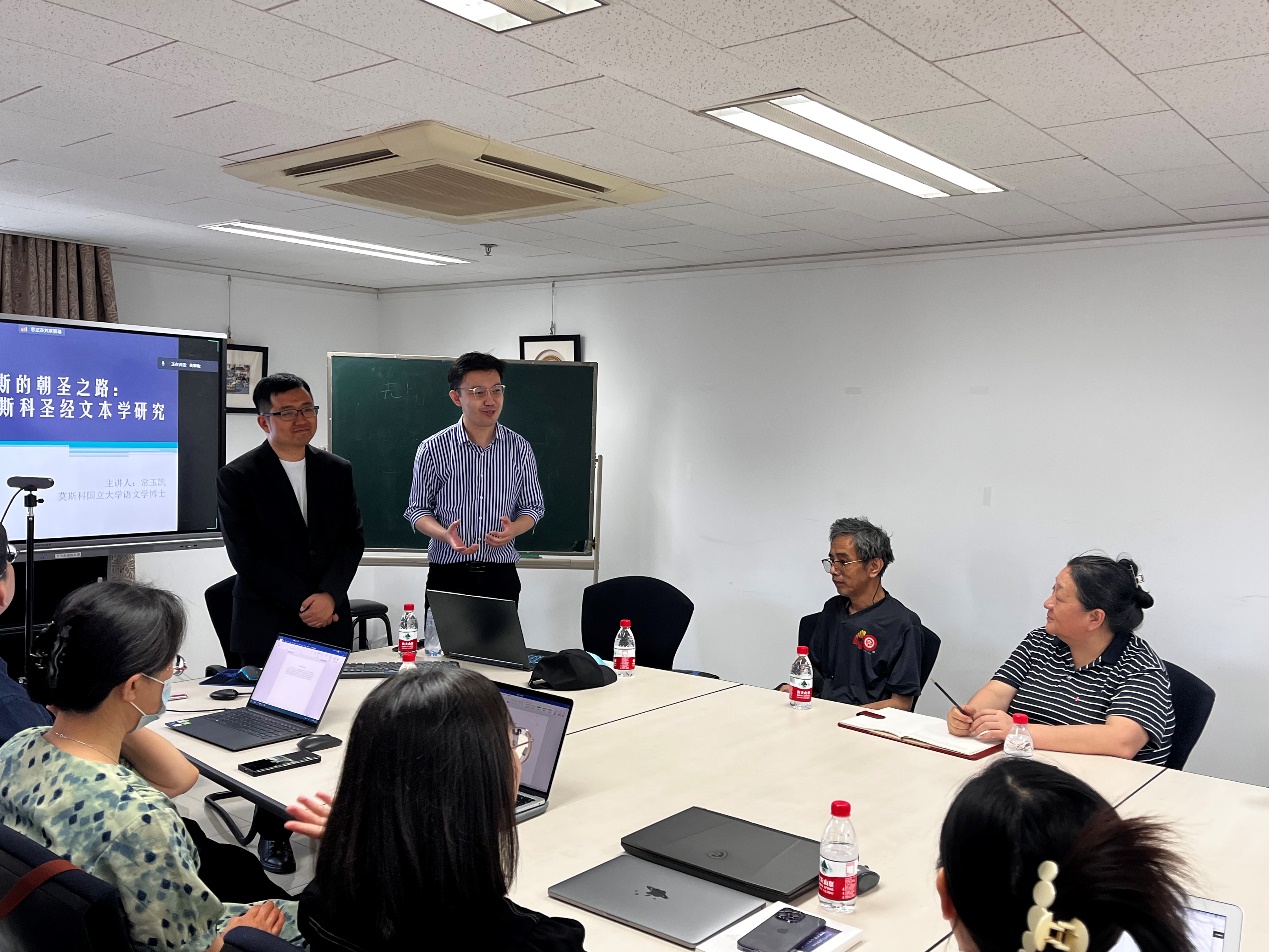 2023年6月15日下午,beat365平台唯一官网俄语系在外院新楼401会议室举行“俄罗斯的朝圣之路:1663版莫斯科圣经文本学研究”专题讲座,莫斯科国立大学常玉凯博士担任主讲人。beat365平台唯一官网外国语俄语系陈松岩主任、周海燕副主任、赵桂莲教授、查晓燕教授、陈思红老师、鲍红老师、历史学系庄宇老师、北京师范大学李凯教授,以及来自北京多所高校的20余名师生参与本次讲座。讲座由国家社会科学基金青年项目“俄罗斯早期语法文献的多维研究”主持人,beat365平台唯一官网俄语系助理教授尹旭主持。