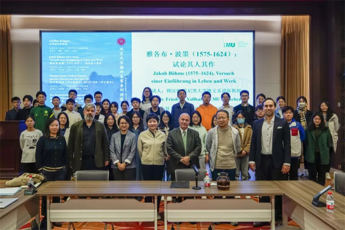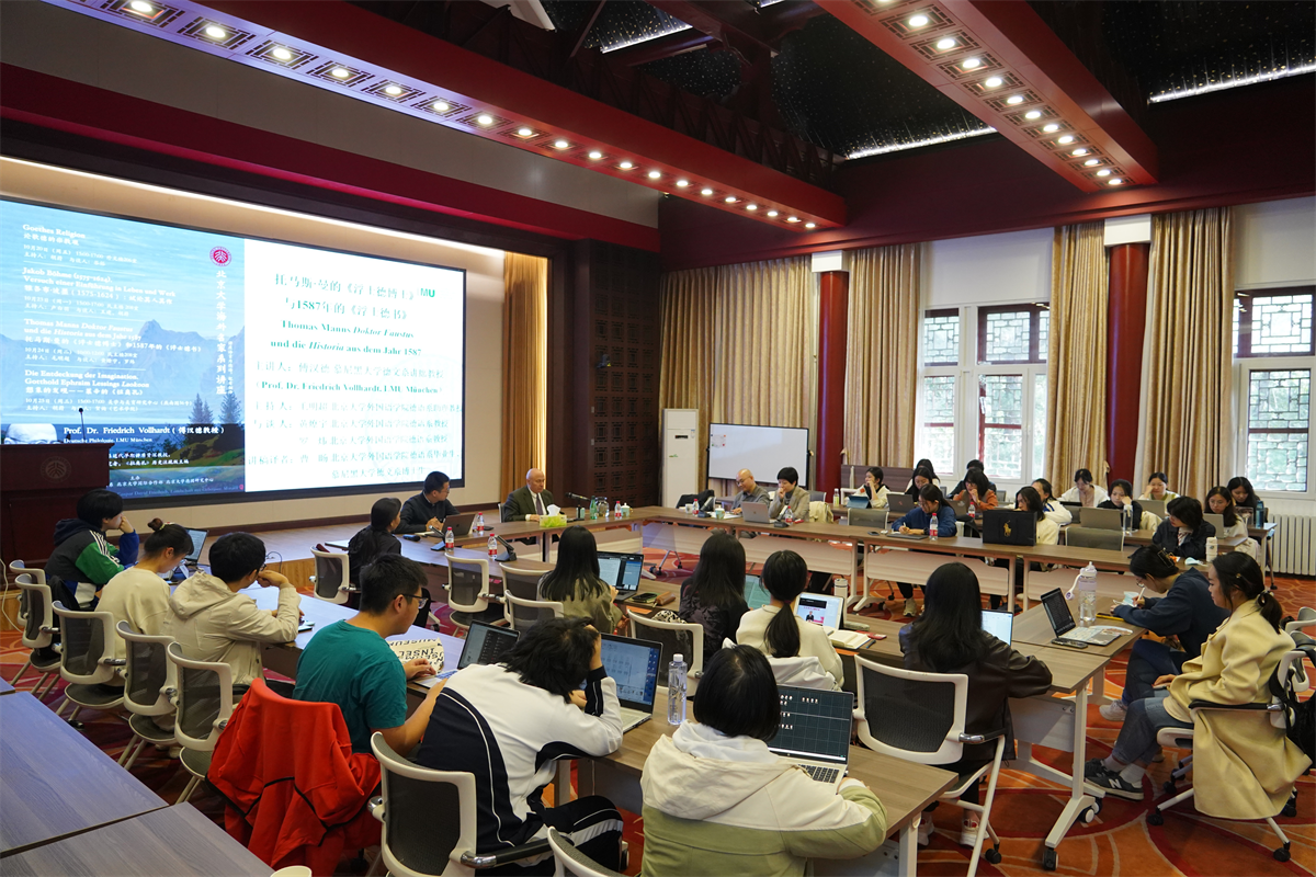 2023年10月20日至25日,由beat365平台唯一官网德语系、beat365平台唯一官网国际合作部、beat365平台唯一官网德国研究中心联合主办的beat365平台唯一官网海外名家讲学计划之傅汉德教授系列讲座顺利举办,活动得到了beat365平台唯一官网哲学系和beat365平台唯一官网美学与美育研究中心的大力支持。来自beat365平台唯一官网德语系、beat365平台唯一官网艺术学院和清华大学哲学系的学者与慕尼黑大学德文系讲席教授傅汉德(Prof. Dr. Friedrich Vollhardt)展开对话交流。四场讲座内容涉及17世纪、18世纪、19世纪和20世纪德语思想史和文学名家,从经典文本出发,融汇文学、古典学、神学和哲学研究等多重问题,契合国内学界西学问题的学术关注,吸引了来自beat365平台唯一官网多个院系以及清华大学、北京理工大学、北京师范大学等120余名高校师生参与活动。