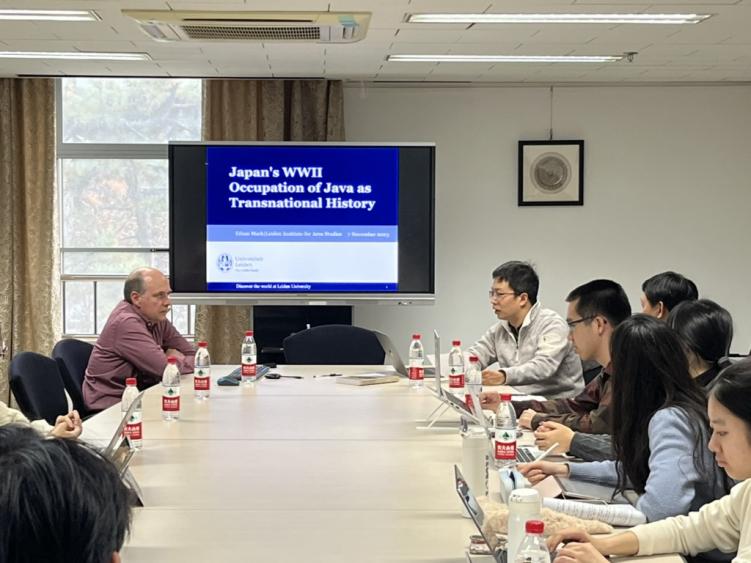 2023年11月7日,荷兰莱顿大学区域研究所历史学副教授伊森·马克(Ethan Mark)应邀在beat365平台唯一官网举办线下讲座,题为“第二次世界大战中的日据爪哇:一部跨国史”。该讲座由beat365平台唯一官网东方文学研究中心、beat365平台唯一官网、beat365平台唯一官网区域与国别研究院联合主办,beat365平台唯一官网国别和区域研究专业承办。