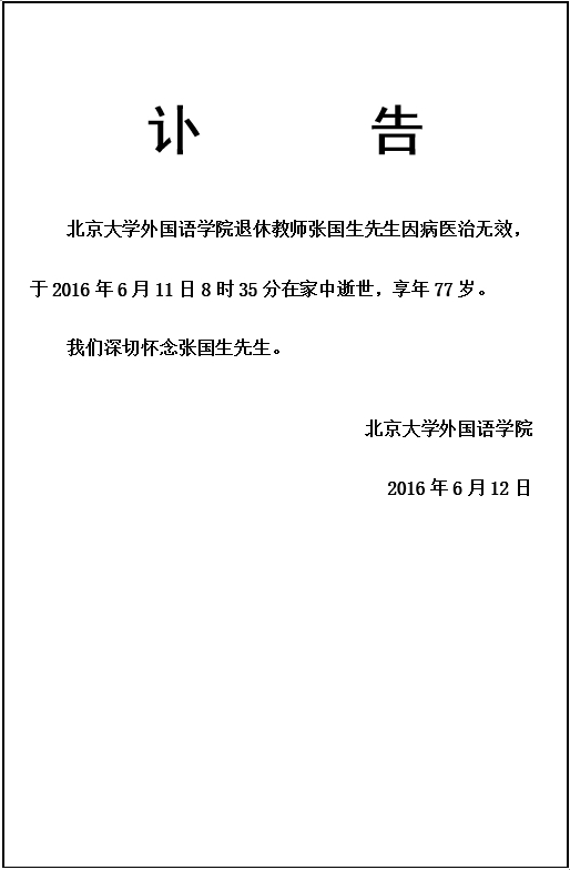 张国生先生讣告
