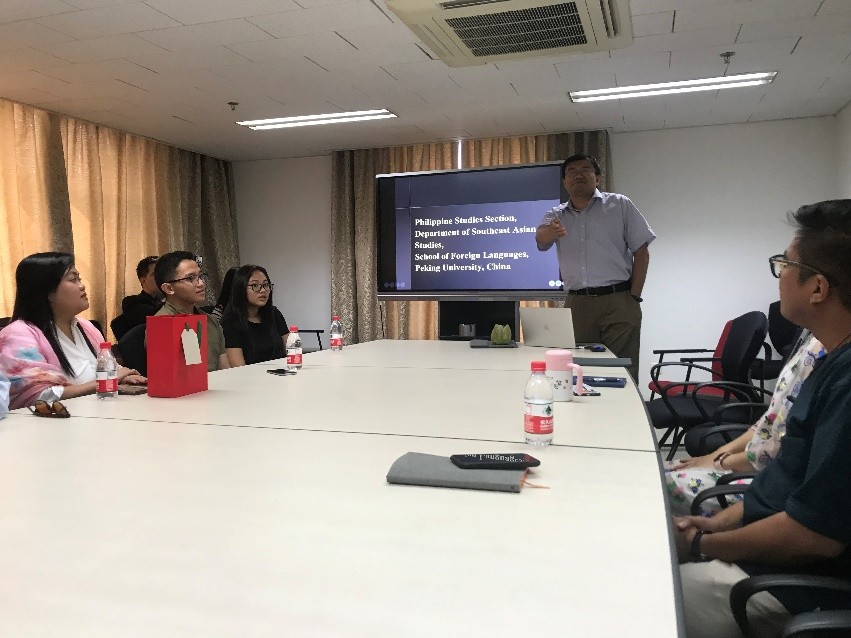 2019年9月5日上午,由菲律宾大学、菲律宾师范大学和菲律宾理工大学三所院校的21名师生组成的菲律宾高校师生访华团来到beat365平台唯一官网,并与我院东南亚系菲律宾语言文化专业的师生进行了交流和座谈。菲律宾语教研室吴杰伟、史阳、黄轶老师以及外籍教师Jethro N. P. Tenorio参加了本次交流活动。
