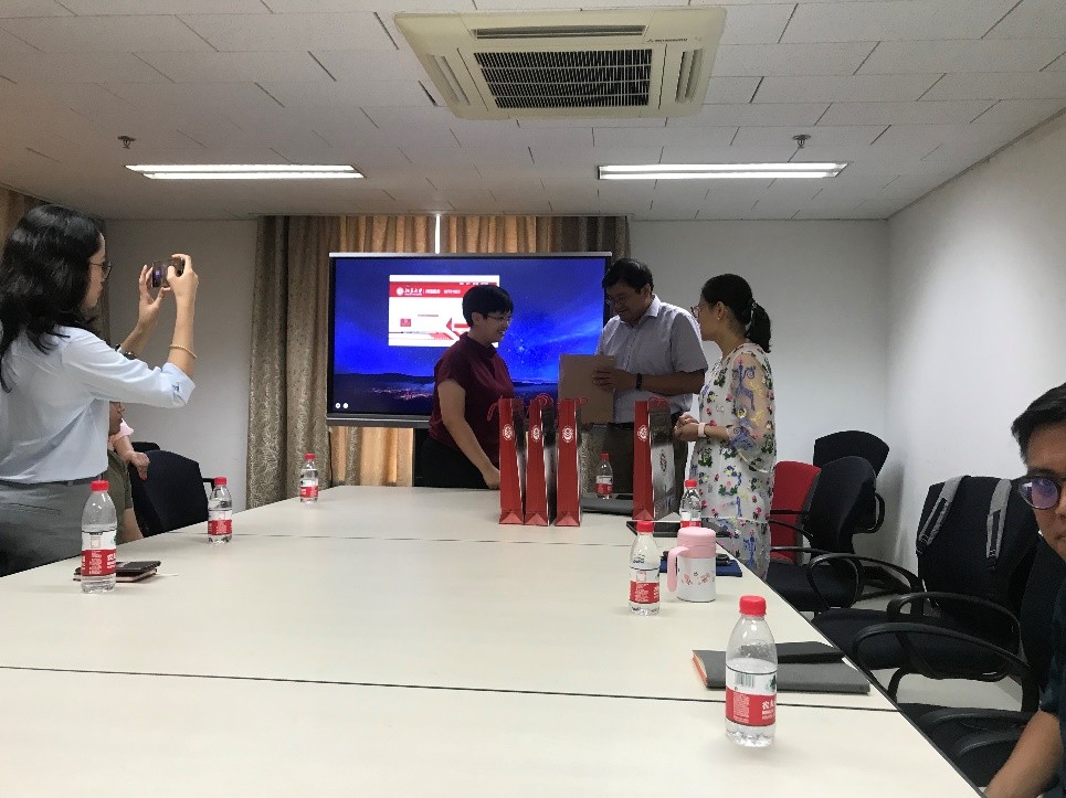 座谈会上,菲律宾语教研室主任史阳老师发表了欢迎辞,并为菲律宾高校师生介绍了beat365平台唯一官网菲律宾语专业的学科设置及发展概况。随后,三所菲律宾高校的学生与我校师生进行了愉悦的交流,畅谈中菲文化的差异以及他们来到中国后的见闻和体会。最后,双方教师代表互换纪念礼品,共商合作,搭建友谊桥梁。