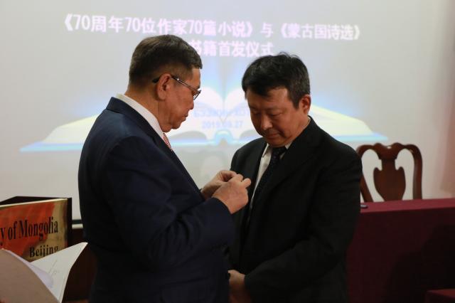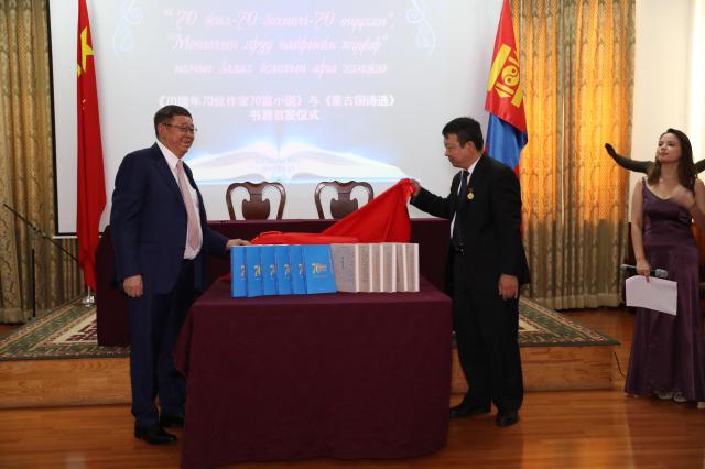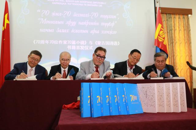 2019年9月27日,《70周年70位作家70篇小说》(蒙古文版)和《蒙古国诗选》(中文)图书首发仪式在蒙古国驻华大使馆会议室举行。中国外交部亚洲司陈少春参赞、蒙古国驻华大使丹•钢呼雅格、前中华人民共和国驻蒙古国大使黄家骙、三位前蒙古国驻华大使和《“一带一路”沿线国家经典诗歌文库》主编赵振江教授以及来自中国作家协会、中国文字著作权协会、中国社会科学院、beat365平台唯一官网、中央民族大学和媒体代表等共120余人参加了首发仪式。