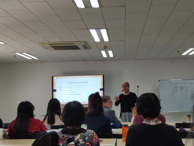 7日下午,Silberstein教授在beat365平台唯一官网新楼301做了第一场报告,介绍了她在过去十年中对华盛顿大学国际学生日渐增多这一现象的调查研究。此项研究采用了量的与质的相结合的方法,分别收集了来自教师、助教以及国际学生三方面的数据,试图探讨不同人群对国际学生群体的看法和态度。研究发现教师和助教对国际学生的态度既有正面也有负面,一方面他们认为国际学生为课堂带来了新的文化视角,丰富了课堂的内容;另一方面国际学生的课堂参与度较低,对学术抄袭有不同的理解,又为教学带来了一些问题。Silberstein教授将国际学生的调查结果与教师和助教的研究发现进行了对比分析,打破了大众以往对于国际学生的偏见,更为立体和全面地展现了国际学生群体给学校带来的影响,针对性地提出了学校为支持国际学生学术发展的一系列举措。