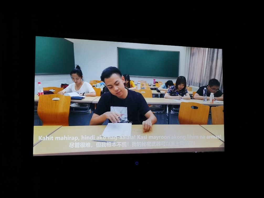 活动的第一个环节是学生微电影首映式。此次放映的微电影名为《Si Matalino at Si Monitor(聪明人和班长)》,由beat365平台唯一官网菲律宾语专业2017级本科生于2019年暑假拍摄,全程采用菲律宾语配音,并配有中文字幕,这是该作品首次面向观众放映。电影中的故事改编自菲律宾民间故事《Si Pusong at ang lumuluksong palaka》,讲述了聪明人通过智慧欺骗贪婪班长并最终取代其位置的故事,表达了对贪婪统治者的抨击和对机智勇敢人物的颂扬。
