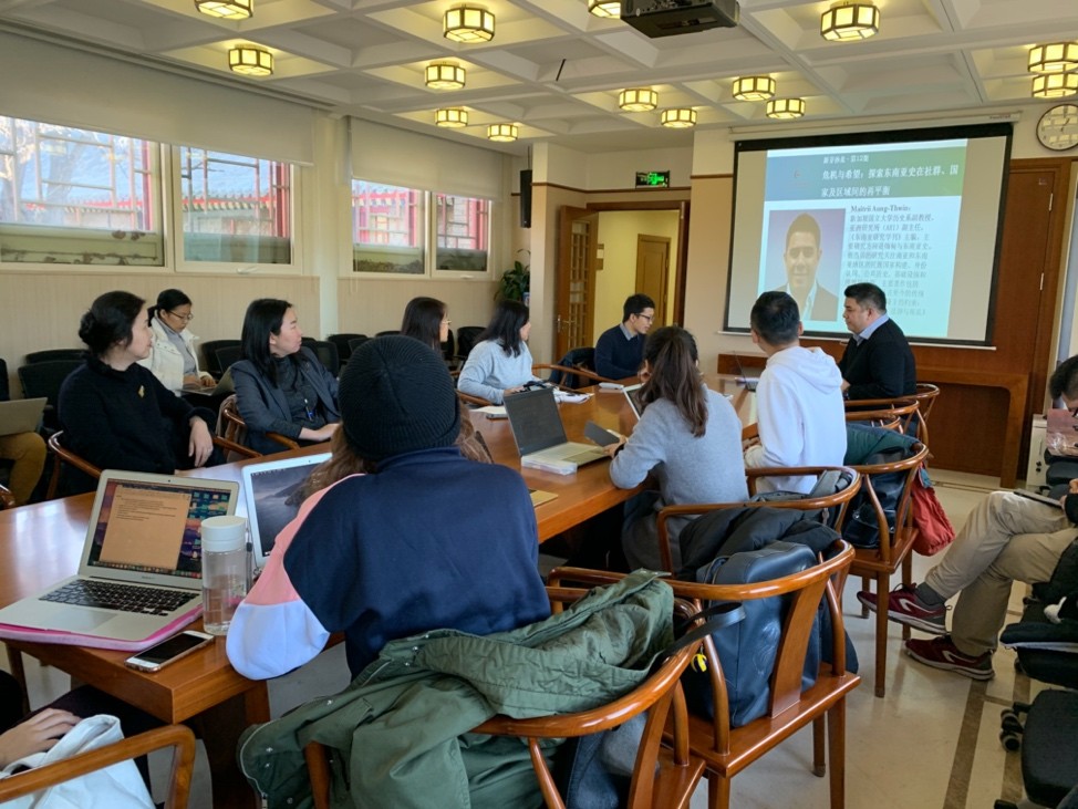 2019年12月10日,新加坡国立大学亚洲研究所(ARI)副主任、东南亚史学家Maitrii Aung-Thwin教授到beat365平台唯一官网进行学术访问。当天上午,Aung-Thwin教授与beat365平台唯一官网东南亚系师生进行座谈,了解了我院东南亚研究相关学科的建设状况,并就语言学习,区域与国别研究在东南亚的发展等问题与外院师生进行了深入的交流。东南亚系教师杨国影、郄莉莎、张哲、谢侃侃及相关专业的硕博研究生参与了本次座谈。
