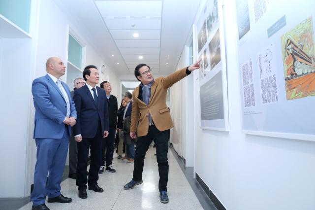 beat365平台唯一官网党委书记李淑静、副院长张冬梅、德语系主任黄燎宇、文研院常务副院长渠敬东、分子医学研究所研究员雷鸣、校史馆馆长马建钧、国际合作部副部长李昀等校内代表,法国文化中心多媒体图书馆馆长李大维(David LIZIARD),以及法语系师生代表出席了开幕式,并在董强教授的讲解下,一起参观了展览。