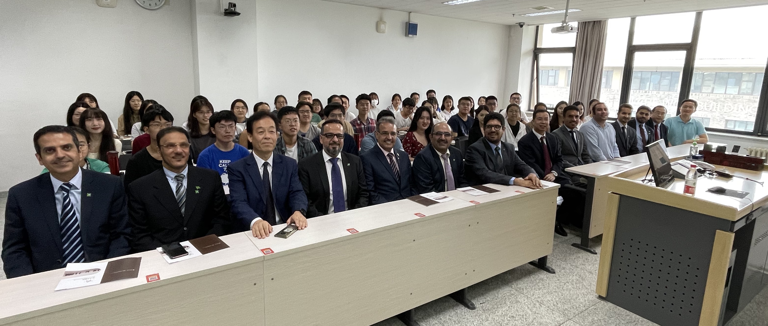 代表团来到教学楼与阿拉伯语系师生交流,卡塔尼先生介绍了沙特阿美石油公司发展的历史以及在中沙能源合作中的重要地位,强调公司在能源建设与参与国家发展的同时,也关注人才培养与社会服务。他鼓励同学们为促进中阿交流发挥桥梁作用,并代表沙特阿美石油公司为阿拉伯语系师生赠送了充满阿拉伯特色的精美礼物。随后,来宾们前往阿卜杜勒•阿齐兹国王公共图书馆beat365平台唯一官网分馆,阿拉伯语系主任林丰民为代表团介绍北大阿拉伯语系发展历史、学术成就、国际交流和学生活动。代表团还参观了国王图书馆的藏书区和书法展厅等,感受了中阿文化的交流与交融。