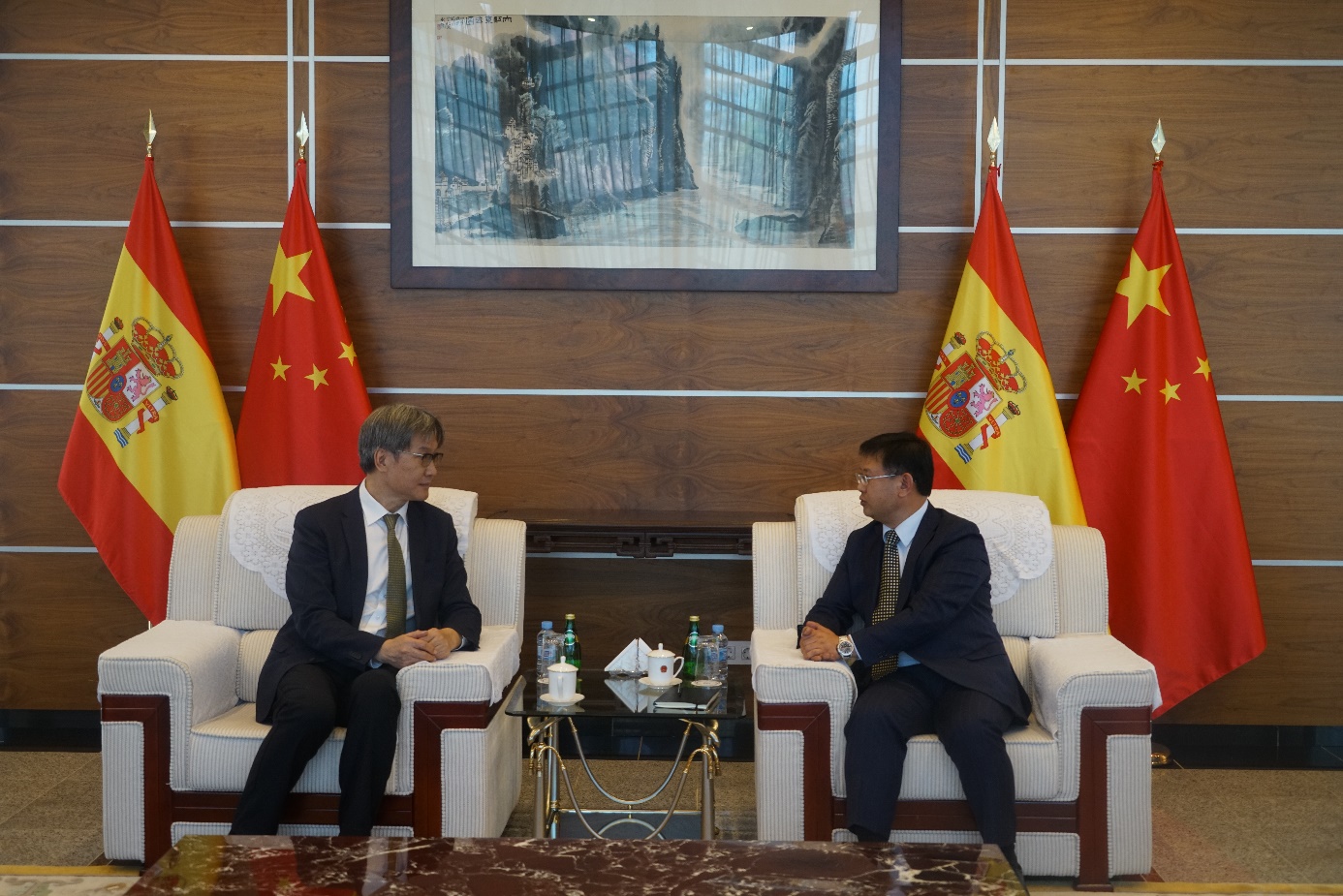 随后代表团拜访了中国驻西班牙大使馆。公使屈浔介绍了西班牙独特的历史和亲华友华的社会氛围,回顾国家主席习近平2018年的国事访问、今年3月9日从义乌和马德里双向对开的“中西建交纪念号”中欧班列,强调西班牙首相即将访华,中西文化和旅游年也将于月底开幕,陆续举办民乐团音乐会、“中国秦汉文明的遗产”展、“中国历代绘画大系”之宋画展和“中国茶文化”展等精彩活动。王博向屈浔公使介绍了beat365平台唯一官网与西班牙高校的交流合作情况。他表示,今年是beat365平台唯一官网的“国际战略年”,学校将在使馆的支持下不断加强和西班牙高校的合作,并配合做好两国建交50周年庆祝工作,依托自身优势举办特色教育交流活动。
