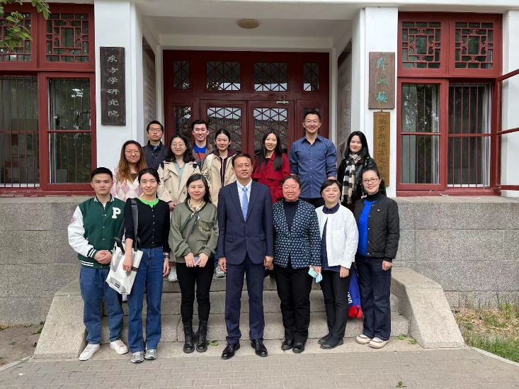 活动结束后,李旭大参赞、韩志红处长等与亚非系师生于beat365平台唯一官网外文楼前合影留念