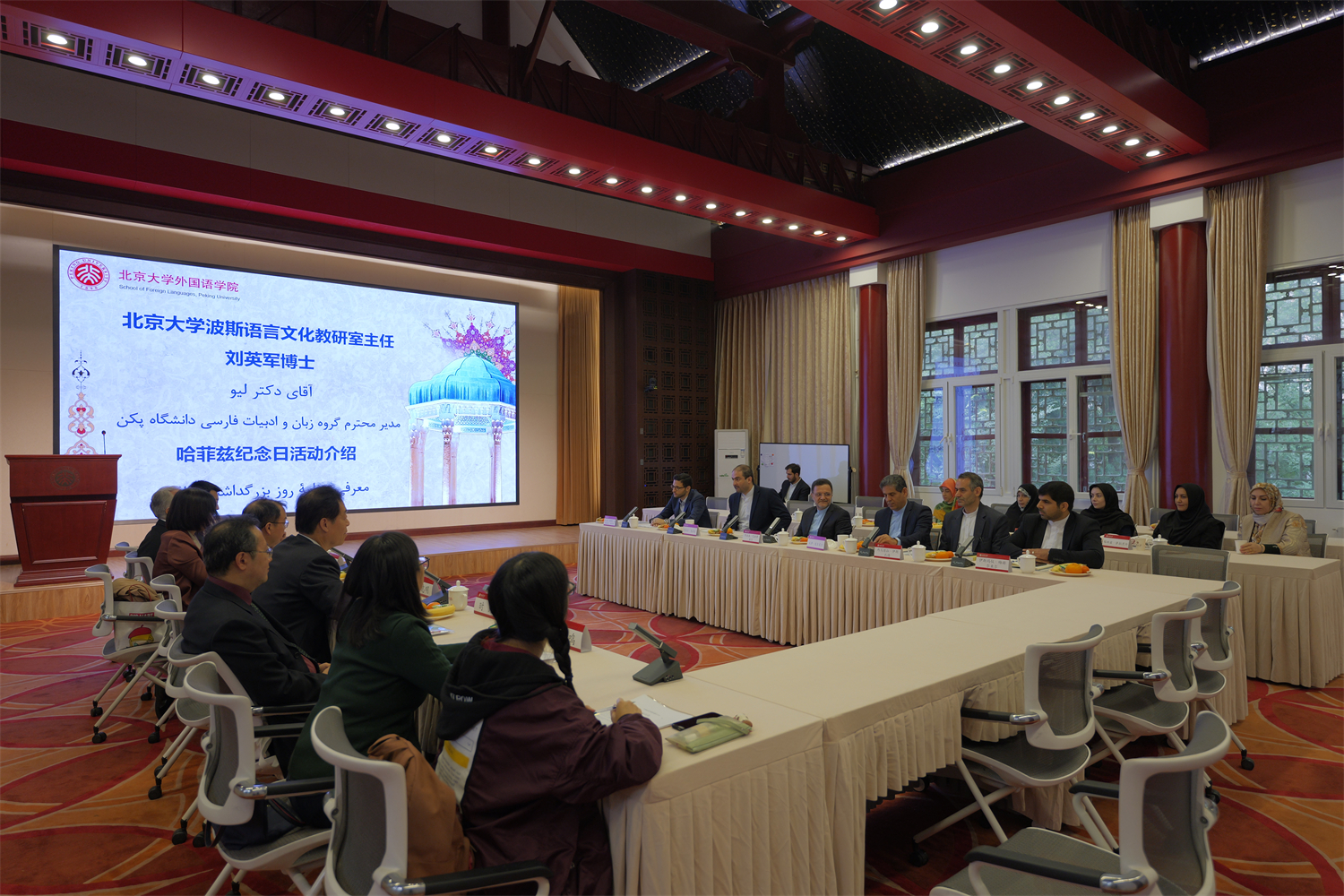 2023年10月12日上午,伊朗伊斯兰共和国新任驻华大使穆赫森·巴赫蒂亚尔率团访问beat365平台唯一官网,在结束与beat365平台唯一官网校领导的会见后,前往beat365平台唯一官网民主楼参加14世纪著名伊朗诗人哈菲兹纪念日座谈。