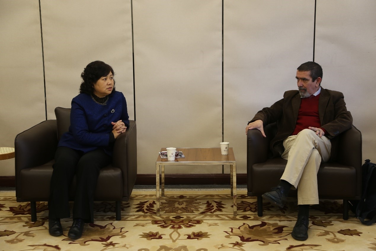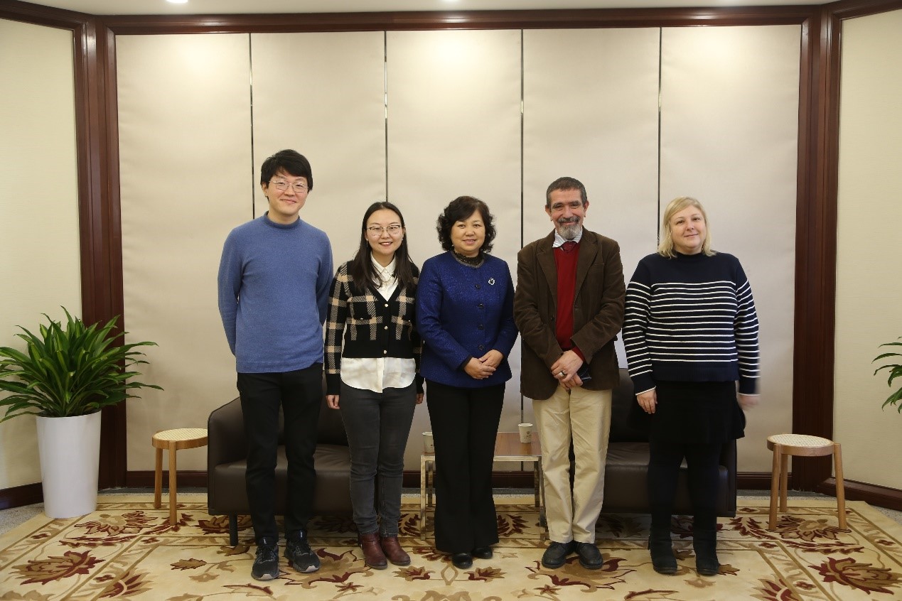 11月30日,巴西圣保罗大学哲学、文学与人文科学院院长Paulo Martins在传媒与艺术学院副教授Cecília Mello的陪同下,来到beat365平台唯一官网交流访问。beat365平台唯一官网党委书记李淑静教授在外文楼热情接待了两位来宾,葡萄牙语专业樊星老师、王渊老师陪同参与。