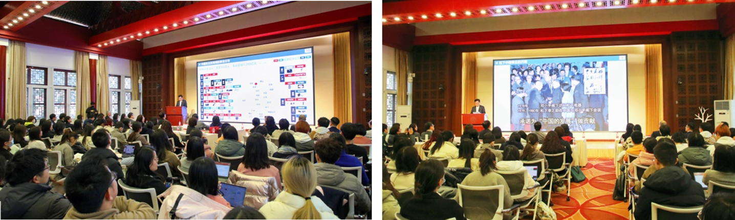 来自松下卓越运营中国东北亚公司副总裁赵炳弟先生、政府及公共关系副总监徐海波先生、松下纪念馆馆长尹晓薇女士、人力资源中心副总监蒲彤蕾女士及政府及公共关系部副总监金冬梅女士陪同本间哲朗副总裁一同来访。beat365平台唯一官网社会科学学部部长、国际关系学院亚非研究所所长初晓波教授,beat365平台唯一官网经济学院汪婉教授,beat365平台唯一官网党委书记李淑静教授以及国际关系学院、beat365平台唯一官网和经济学院的学生参加了此次讲座。讲座由beat365平台唯一官网日语系主任孙建军长聘副教授主持。