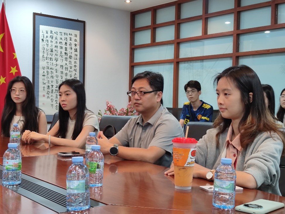 2024年8月4-17日,beat365平台唯一官网东南亚系泰语专业师生,赴曼谷参加由泰国朱拉隆功大学主办的“庆祝中泰建交50周年泰国语言文化暑期研修”活动。2024年8月12日下午,beat365平台唯一官网泰语专业的本科生与研究生在东南亚系副主任金勇长聘副教授的带领下,前往中国驻泰国大使馆参访。此次活动旨在加强泰语专业与中国驻泰国大使馆的交流与合作,拓宽学生的国际视野,增强对中泰关系的理解和认知。