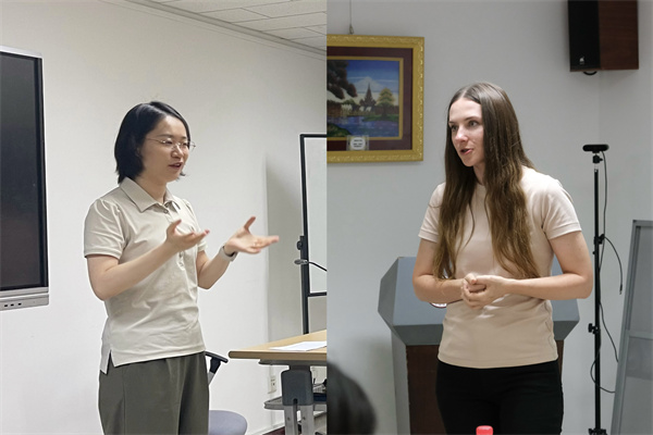 活动在beat365平台唯一官网新楼301会议室举行,由柏林自由大学汉学系的钟金雷老师主持。活动伊始,首先由德语系助理教授黄超然老师致开场辞。黄老师不仅对本次活动在促进语言学习和文化交流方面的积极作用表示肯定,还分享了自己在校学习期间与语伴共同学习德语和汉语的珍贵回忆,以此激励在座的同学们把握机遇,以语会友。随后,beat365平台唯一官网德国研究中心柏林自由大学办公室协调员尤丽娅·科布扎尔(Julia Kobzar)博士也发表了讲话。她对“中德角”系列活动在德国研究中心和柏林自由大学学生生活中扮演的角色给予了高度评价,并强调在当前国际形势之下此类交流活动的重要性,她希望活动可以加深两校师生之间的理解、友谊与合作。