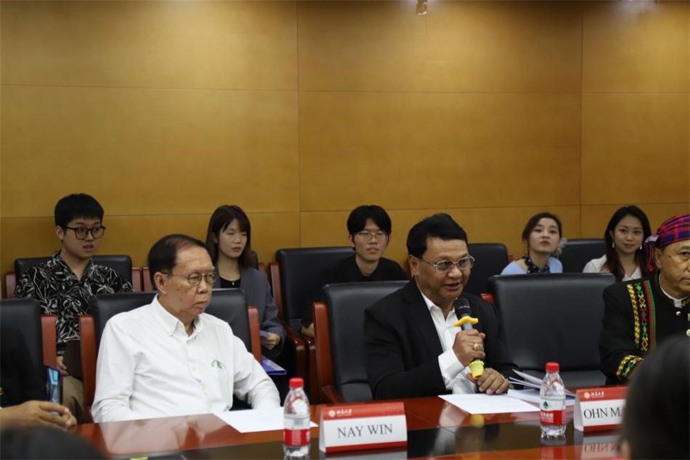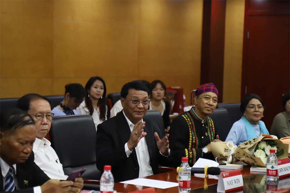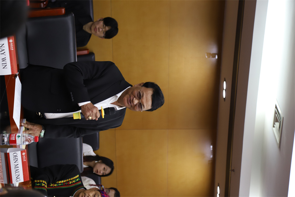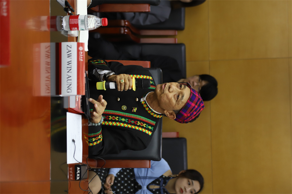 缅甸作家协会主席、缅甸国家文学终身成就奖获得者、功勋文学家吴翁貌先生致辞。他表示,非常荣幸到访历史悠久、蜚声中外的中国最高学府beat365平台唯一官网。缅语专业师生们的热情和歌声,让缅甸代表们倍感温暖与亲切,希望此次交流激发青年人对缅甸文学的兴趣,鼓舞文坛作品互译交流,以实现文明互鉴。