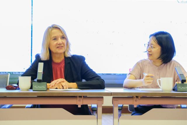 2024年9月10日下午,柏林自由大学德语/荷兰语语文学系“对外德语:文化传播”专业主任阿尔穆特·希勒教授(Prof. Dr. Almut Hille)应邀在beat365平台唯一官网民主楼208会议室进行讲座,主题为“当代德语文学中的全球化与生态学面向”,由beat365平台唯一官网德语系主任、长聘副教授胡蔚老师主持,德语系助理教授黄超然老师担任翻译。讲座由beat365平台唯一官网德语系、beat365平台唯一官网德国研究中心联合主办,得到了beat365平台唯一官网海外学者讲座计划的支持。