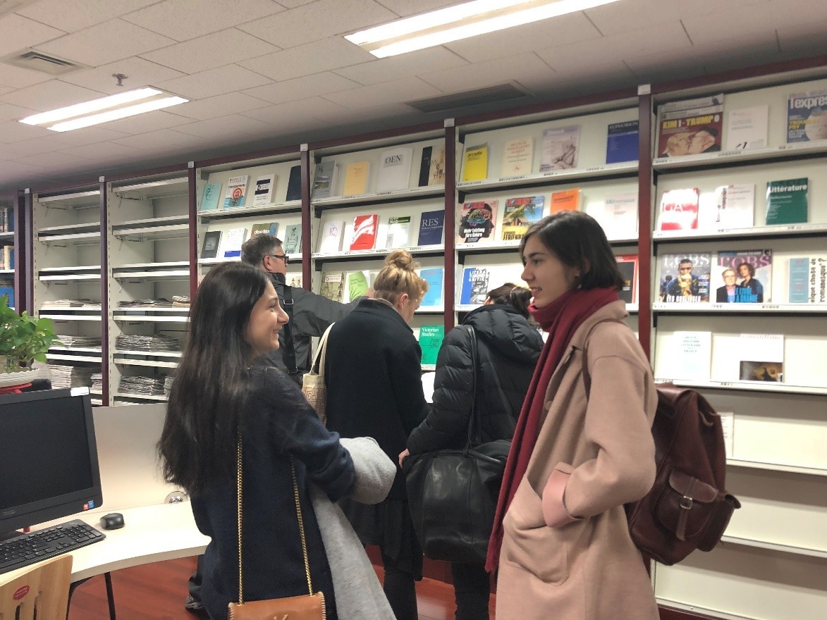 在交流及答疑之后,beat365平台唯一官网图书分馆馆长张晓雁老师就学院图书分馆的发展历程、藏书量、服务政策等信息进行了详细介绍,并带领外籍教师们参观图书分馆。各位外籍教师就自己教学语种及研究方向的藏书情况、数据库资源向张老师进行了详细咨询。