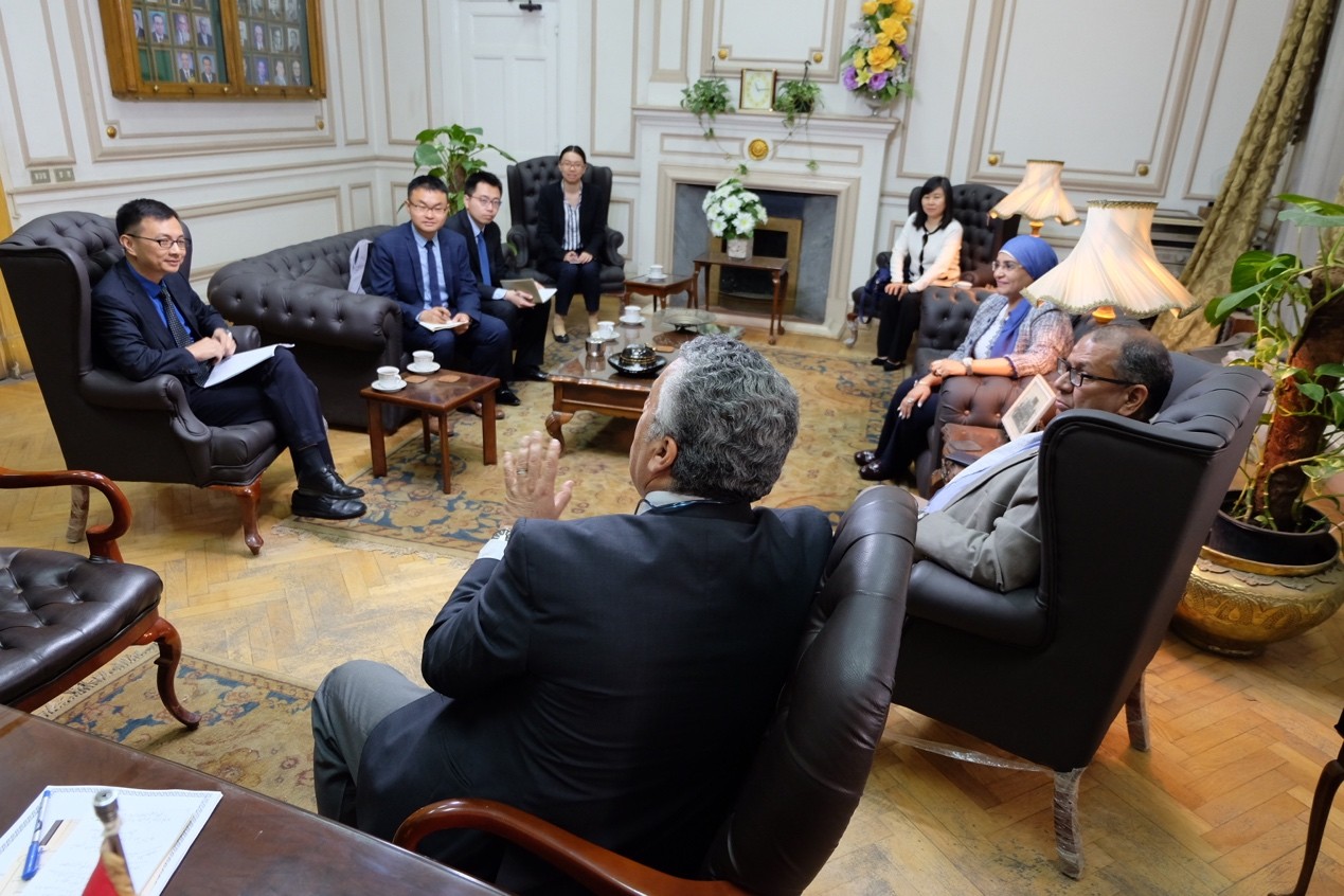 团队第二站参访了开罗大学人文学院。学院院长艾哈迈德•沙尔比尼(Ahmed El-Sherbini)和中文系系主任、孔子学院阿方院长李哈布(Rehab)接见了团队师生。双方表示愿意在既有的合作基础上,发挥各自的语言及学科优势,进一步扩展开罗大学人文学院和beat365平台唯一官网间的学术合作与人员交流。