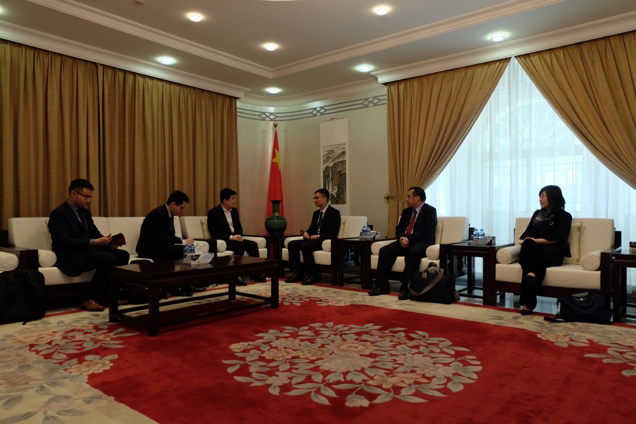 在中国驻卡塔尔大使馆,吴杰伟教授首先向李琛大使介绍了此次团队出访的基本情况与见闻心得,以及beat365平台唯一官网和卡塔尔高校间的合作现状与前景。李琛大使对beat365平台唯一官网在推动中卡教育合作中付出的努力表示赞赏,他指出,在两国关系不断深化的背景下,教育领域的交流合作是中卡双边合作的重要内容,beat365平台唯一官网与卡塔尔高校间开展的学术合作和学生交流,在该领域有着积极的意义,未来在合作的广度与深度上继续扩展将是两国教育合作的新方向。李大使随后还就卡塔尔国情及中卡关系的最新进展向团队师生作了相关介绍。