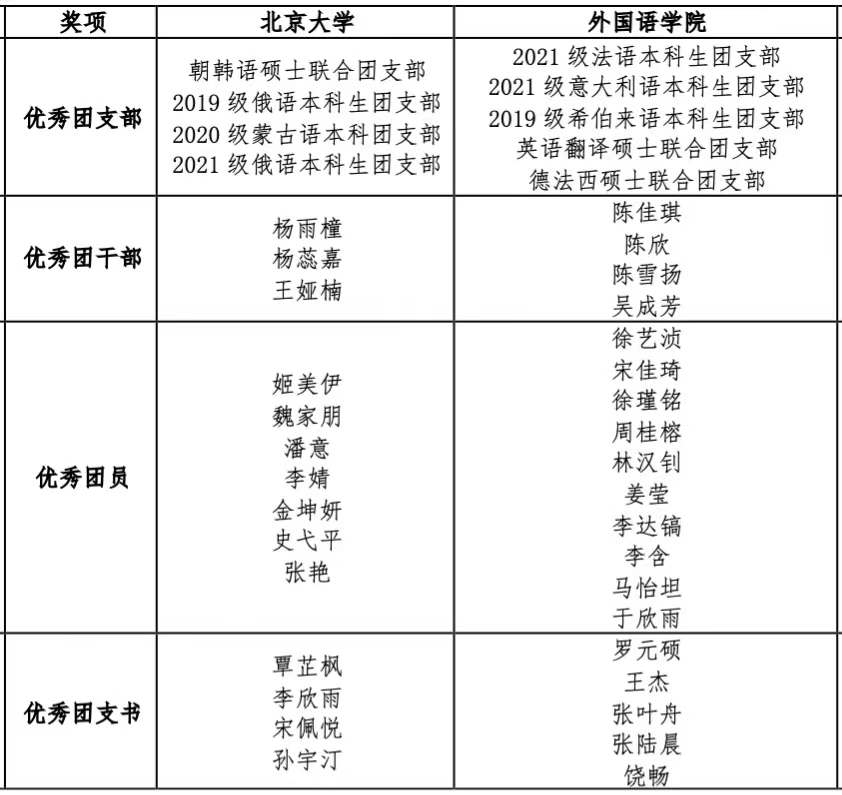 beat365平台唯一官网2021—2022学年度共青团系统表彰名单