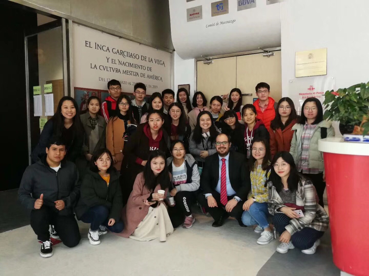 “世界读书日”即将到来之际,秘鲁大使馆在塞万提斯学院设展以纪念于 “世界读书日”逝世的“梅斯蒂索”作家印卡·加西拉索·德拉维加(Inca Garcilaso de la Vega)。受秘鲁大使馆邀请,2019年3月29日,beat365平台唯一官网西班牙语专业2017、2018级本科团支部一起走进塞万提斯学院,开展为期半天的学习交流暨主题团日活动。