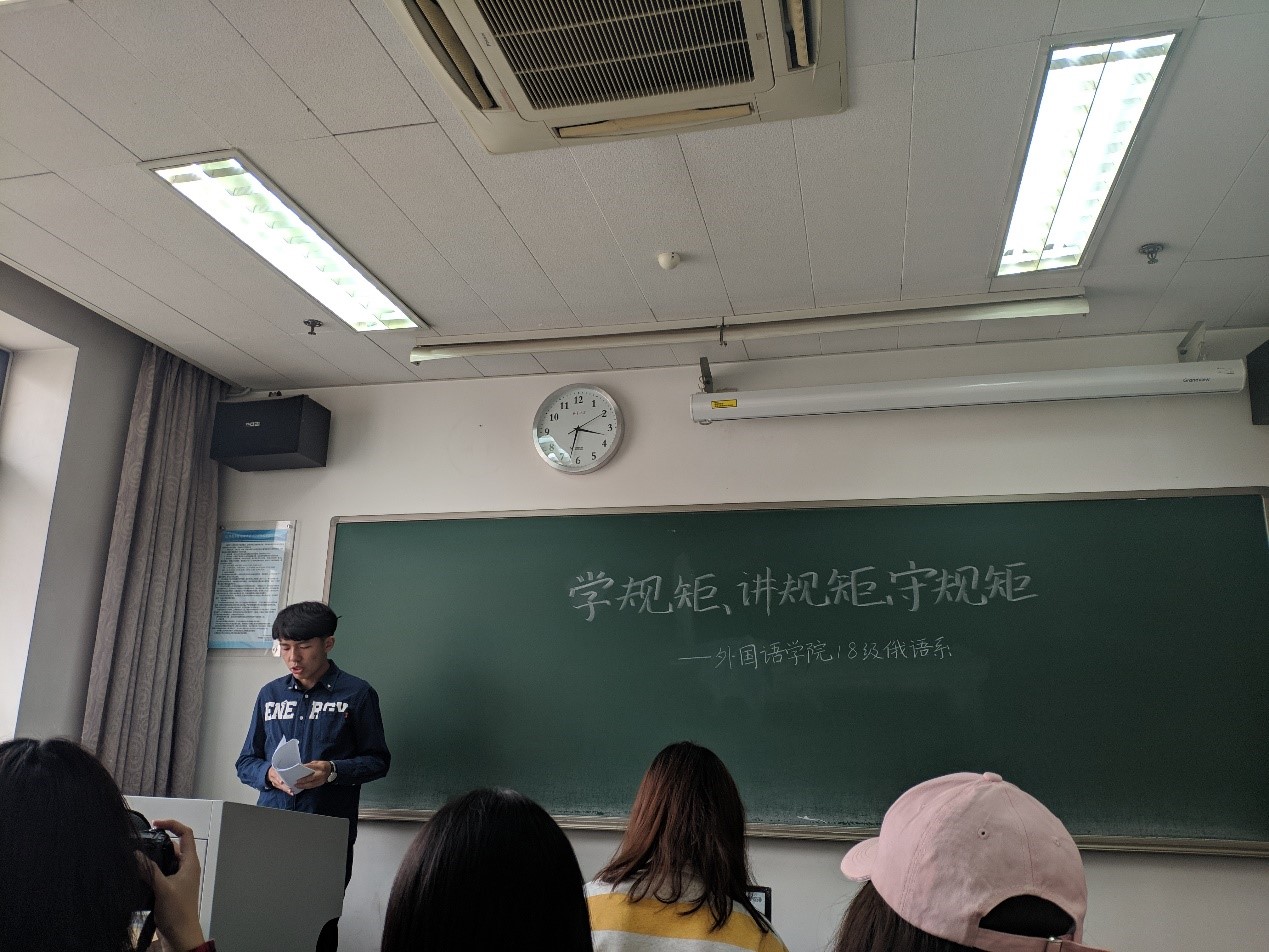 beat365平台唯一官网2018级俄语专业本科生举办 “学规矩、讲规矩、守规矩”主题班会