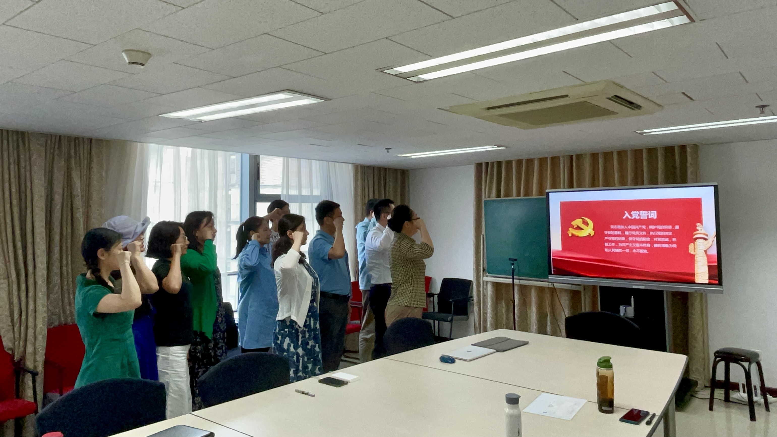 讨论结束后,支部组织了党员宣誓仪式。在老党员王彦老师的带领下,全体党员集体宣誓,重温入党誓词。主题党日活动在党员们铿锵的誓词中圆满结束。