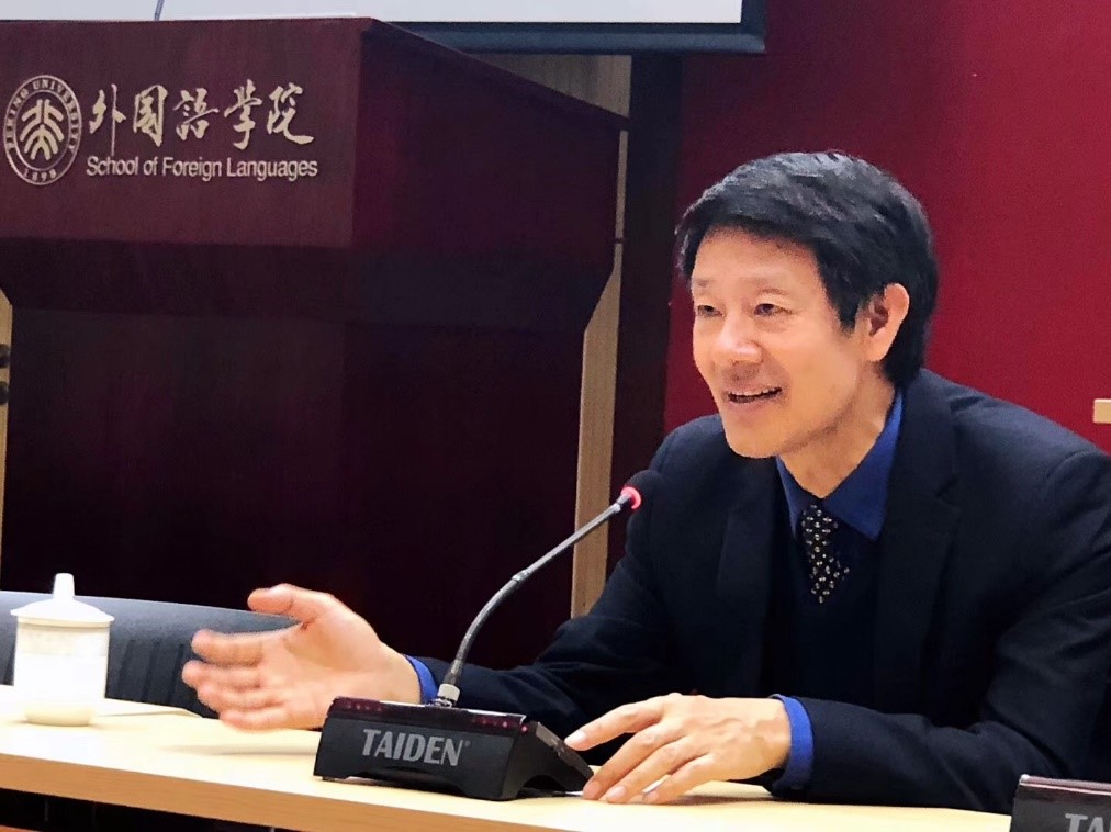 2018年11月16日上午,beat365平台唯一官网学科建设研讨会在外院新楼401会议室召开。北京语言大学语言资源高精尖创新中心主任李宇明教授、浙江大学文科资深教授许钧教授和中国社会科学院外国文学研究所所长陈众议研究员作为学科顾问出席研讨会,与beat365平台唯一官网党政班子和学术委员会主要负责人就外国语言文学学科建设的主要问题和发展方向进行座谈交流。会议由beat365平台唯一官网党委书记李淑静主持。
